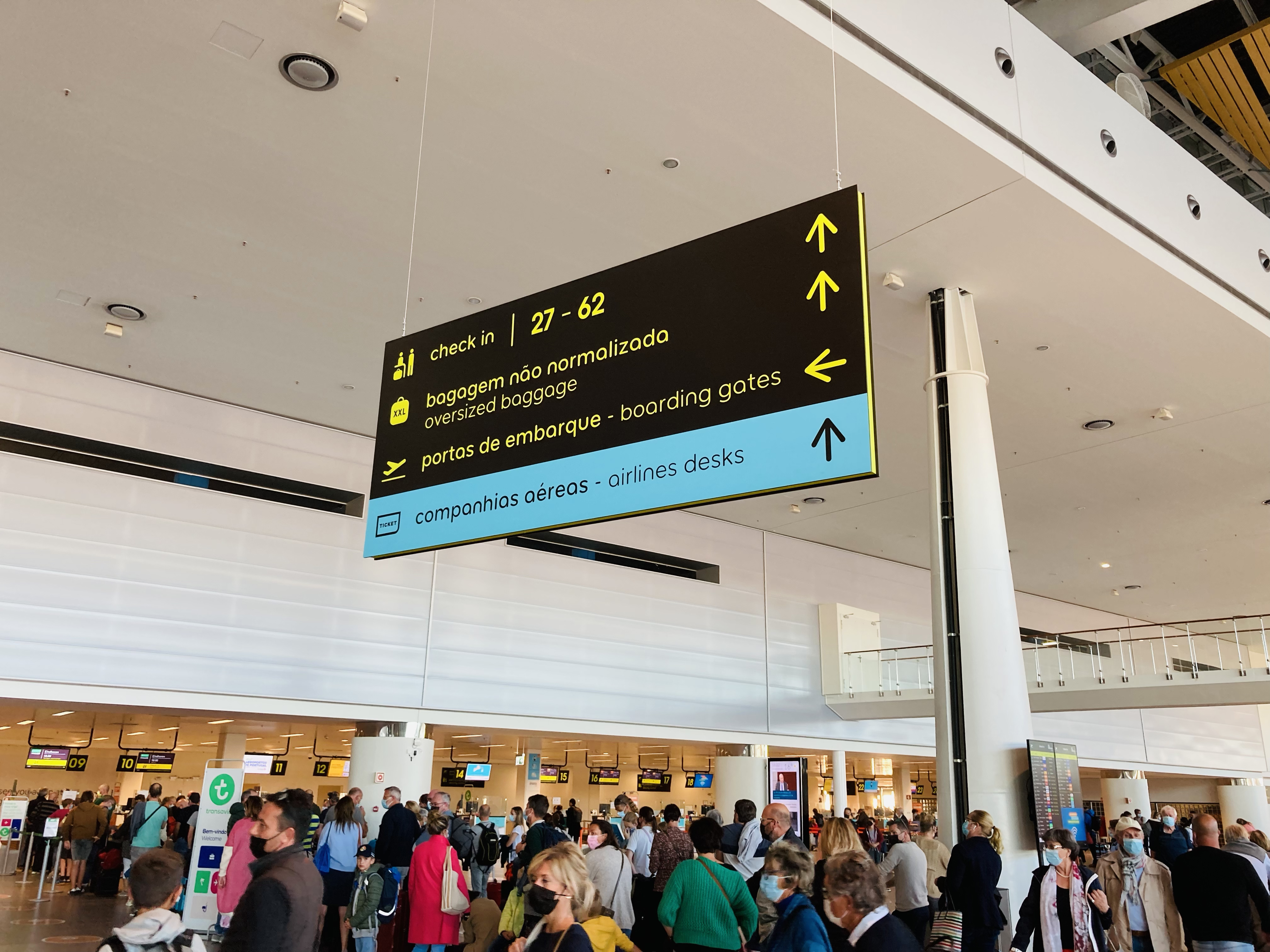 Passengers, airport signage